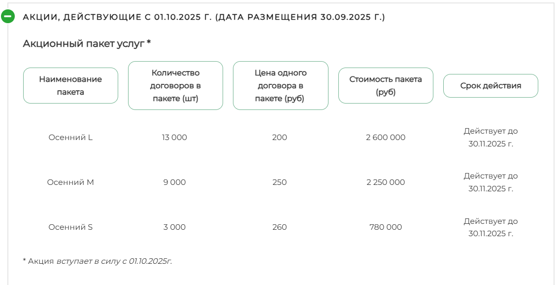 АКЦИИ, ДЕЙСТВУЮЩИЕ С 01.10.2025 Г. (ДАТА РАЗМЕЩЕНИЯ 30.09.2025 Г.)